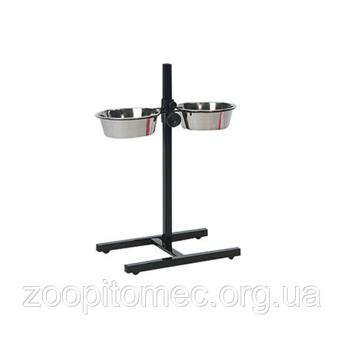 Дві миски для собак на штативі Karlie-Flamingo (Карлі-Фламінго) H-STAND WITH DISHES M, з харчової нержавіючої сталі, штатив з високоміцного матеріалу. Стійка зі знімними мисками, не ковзає по підлозі завдяки гумовим наконечникам на ніжках. Висота мисок регулюється з допомогою штатива. Миски на штативі використовують для зростаючих щенят або пари собак.