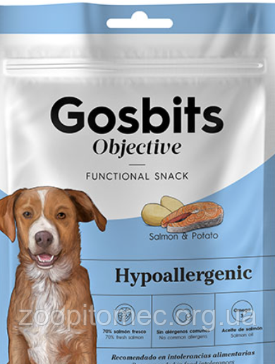 Функціональні напіввологі ласощі зі свіжим м'ясом лосося для дорослих собак з чутливим травленням і схильністю до алергічних реакцій.