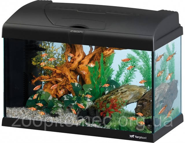 Ferplast CAPRI 50 - акваріумний комплект, оснащений всім обладнанням для запуску. Ідеально відполіровані торці і високоякісний силікон надають акваріуму Ферпласт Капрі бездоганний стильний зовнішній вигляд.